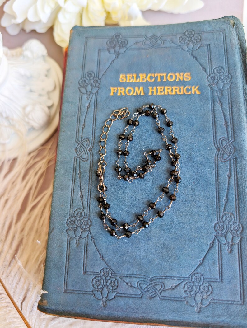 Black Faceted Glass Bead Choker | Gothic Rosary Chain Necklace