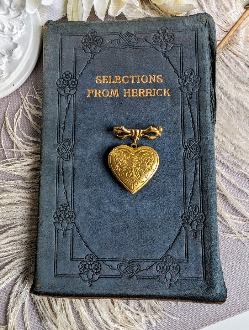 Brass Floral Heart Locket Brooch: Victorian Bridal Bouquet Keepsake