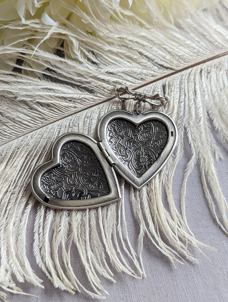 This vintage-style photo locket has two identical heart-shaped recesses where you could keep photos of a loved one or perhaps a special saying you wish to hold close to your heart.