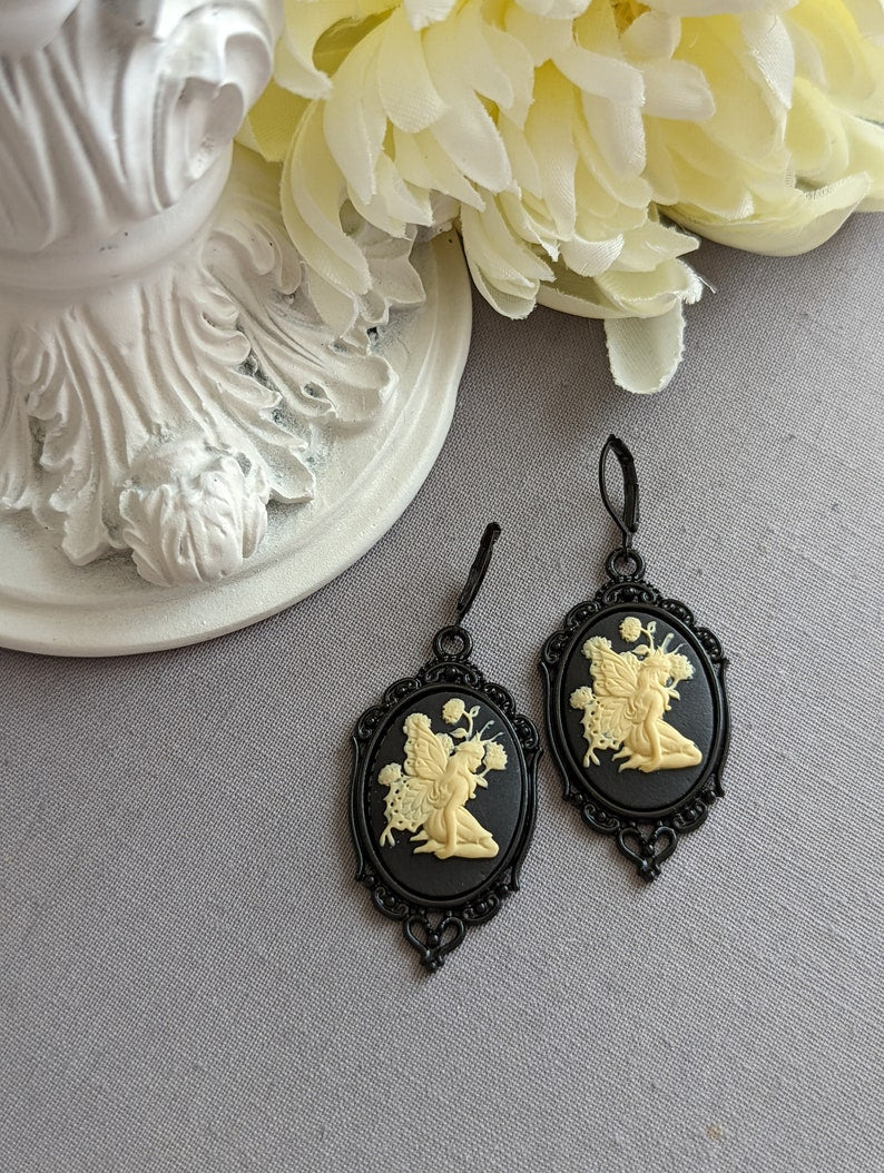 These beautifully detailed Fairy cameo earrings are wonderful statement earrings.