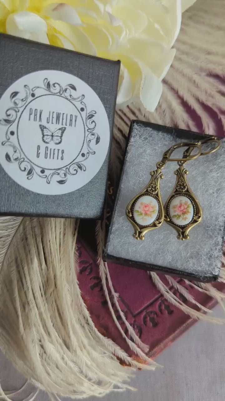 Pink Rose Limoges Earrings: Vintage Style Floral Jewelry