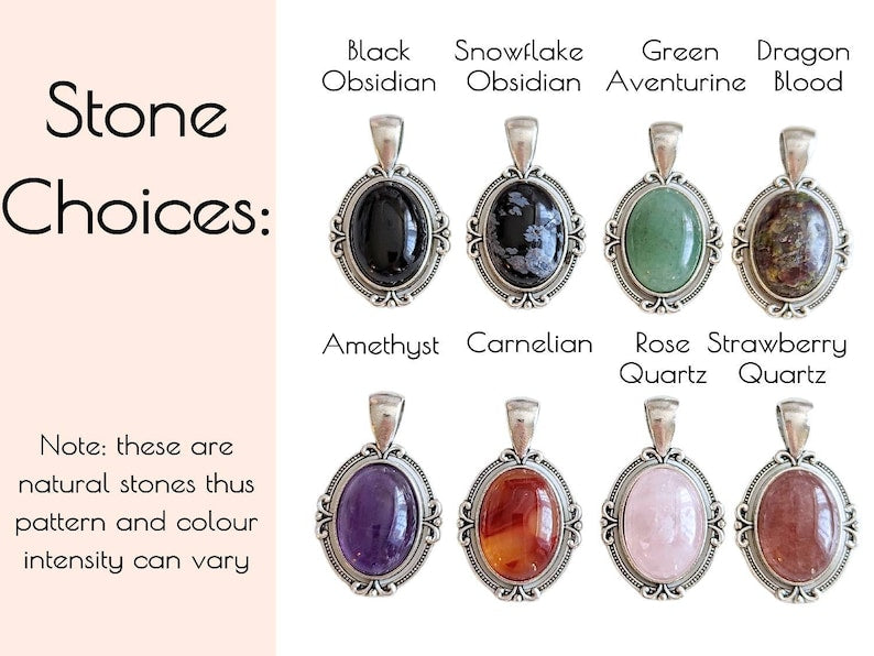 Other stone options are available in the drop-down menu, including Black Obsidian, Rose Quartz, Red Carnelian, and Green Aventurine.